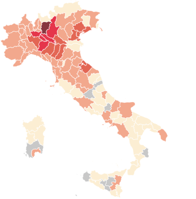 但到了2月21日,形势陡然转变。疫情先是在北部伦巴第、威尼托两个大区迅速传播,继而在包括西西里岛、萨丁岛在内的全国大部分地区广为蔓延。