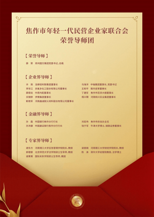 同时焦作市年轻一代民营企业家联合会还公布导师团名单如下:
