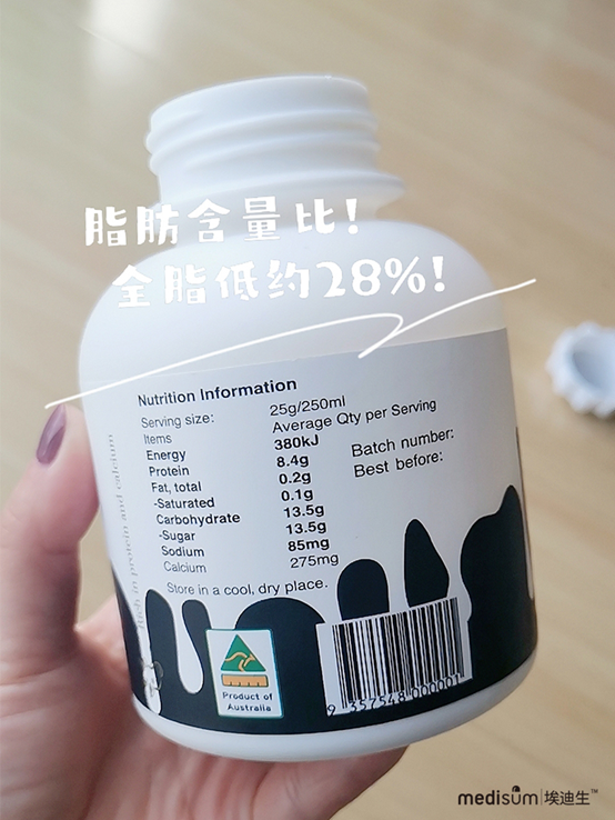 2、南纬37°黄金奶源地 medisum小罐脱脂奶粉小罐的 更新鲜,脱脂不脱味,拒绝长胖