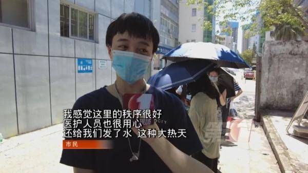 现场还有公安、街道、社区等多个部门近200名工作人员在维持秩序,通过现场发号等方式,引导市民排队。