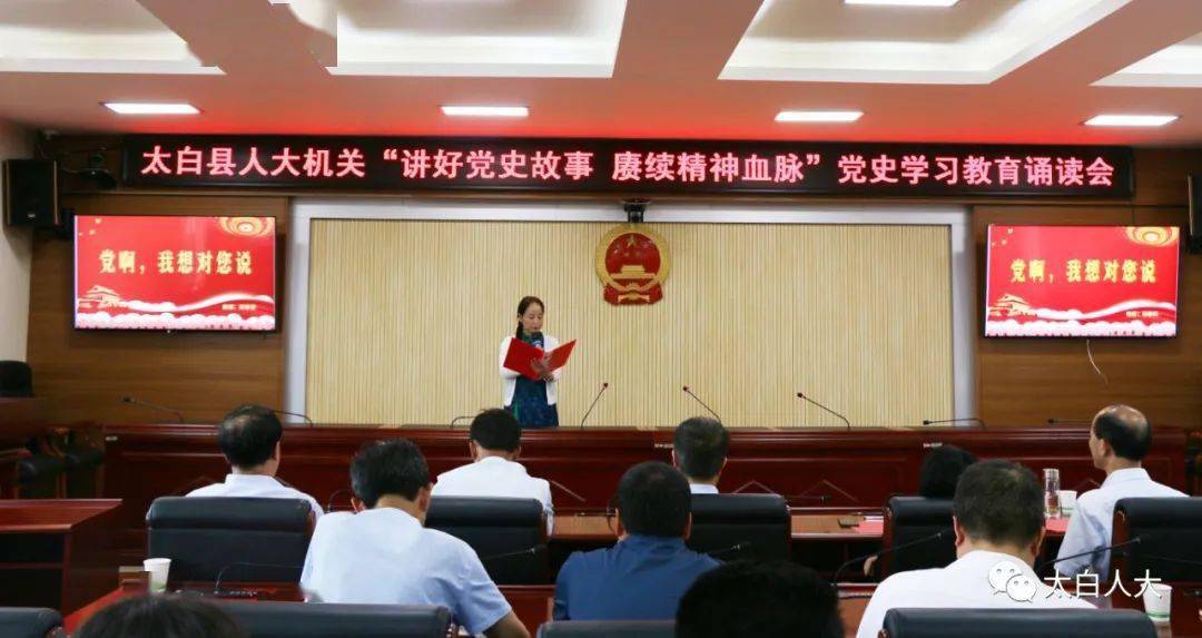 为庆祝中国共产党成立100周年,回顾党的百年历程,讴歌党的丰功伟绩,感悟党的初心使命,6月15日,太白县人大机关举办“讲好党史故事 赓续精神血脉”党史诵读会,机关全体党员干部参加了活动。