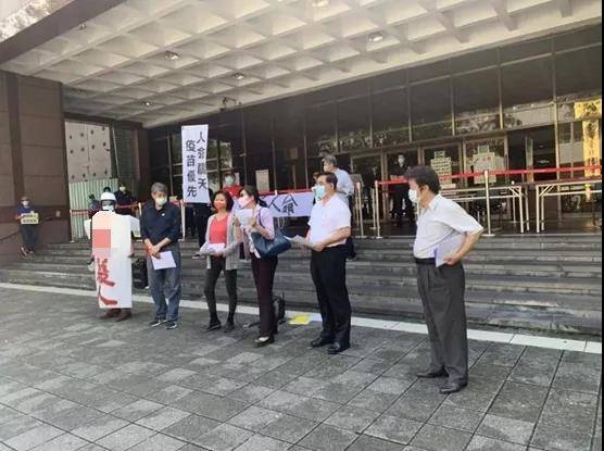 台前“新闻局长”钟琴、孙文学院院长张亚中、新党主席吴成典等人前往台北地检署提告