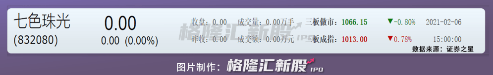 摘牌后,七色珠光与安信证券在广义证监局辅导备案,拟在A股上市。但2020年10月19日,公司向广西证监局提交了终止上市辅导工作的报告。两个月后,七色珠光更名环球新材,冲刺港股。