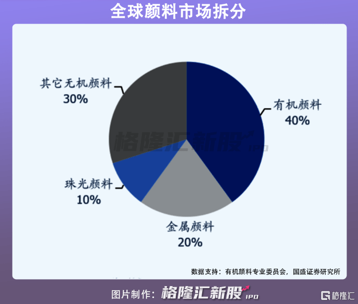 目前,全球颜料市场大致分为有机颜料、金属颜料、珠光颜料和其他无机颜料四个部分。