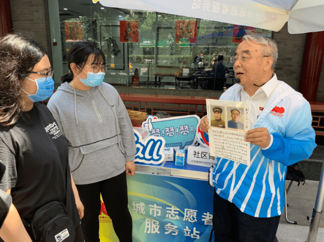 在东城区吴东魁艺术馆前,老党员金铁华以一名城市志愿者的身份走上街头,用他精心收藏的12件红色藏品,向过往的市民献上了一堂生动的党史课。
