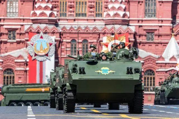 5月9日,俄罗斯首都莫斯科,BTR-MD空降装甲运兵车编队驶过红场。图源:新华社