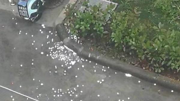 图说:北蔡镇南新六村在户外大量投放消毒片 来源/网络