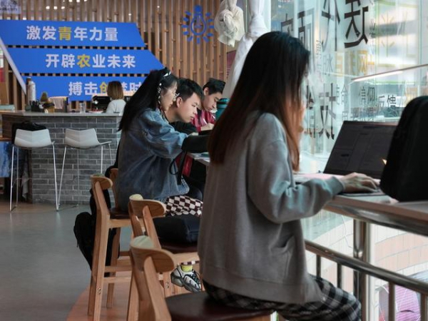 在西北农林科技大学“杨凌文化盒子”,学生交流学习。 新华社记者 赵英博 摄