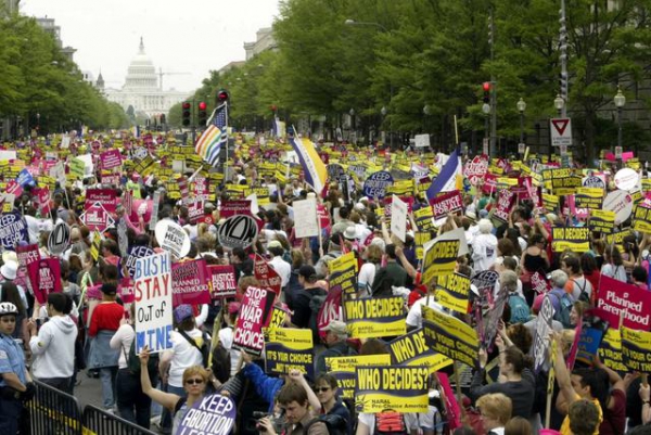 5月14日,在纽约、亚特兰大、芝加哥、洛杉矶等地,示威者走上街头,高举“我的身体我作主”、“堕胎是医疗照护”、“禁令不要触碰我身体”等标语。当天规模最大的示威集会发生在华盛顿,约有2万人聚集在华盛顿纪念碑前,冒着小雨向最高法院游行。
