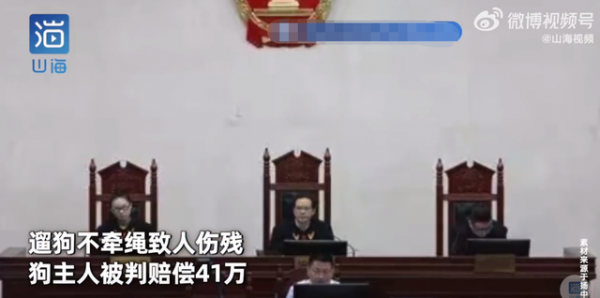 原标题:遛狗不牵绳致人摔伤,主人被判赔41万!