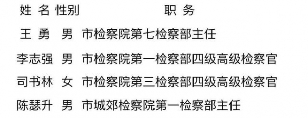 根据《淄博市人大常委会关于2022年对市检察院部分员额检察官开展履职评议的实施方案》安排,今年对市检察院4名检察官开展履职评议。为监督和促进被评议检察官转变作风、改进工作、公正司法,市人大常委会检察官履职评议领导小组办公室自现在起至2022年6月16日,向全市各级人大代表和广大群众征集对被评议检察官的意见建议。征集内容包括:被评议检察官贯彻执行党的路线、方针、政策及落实市委决策部署情况;依法办理检察案件的水平、能力、作风、质量及公正司法情况;自觉接受人大代表及社会各界监督情况;廉洁司法及遵守《检察官职业行为基本规范》《检察官职业道德基本准则》情况等。希望各级人大代表和广大群众本着客观、公正、实事求是的原则,积极提出意见建议。被评议检察官名单如下: