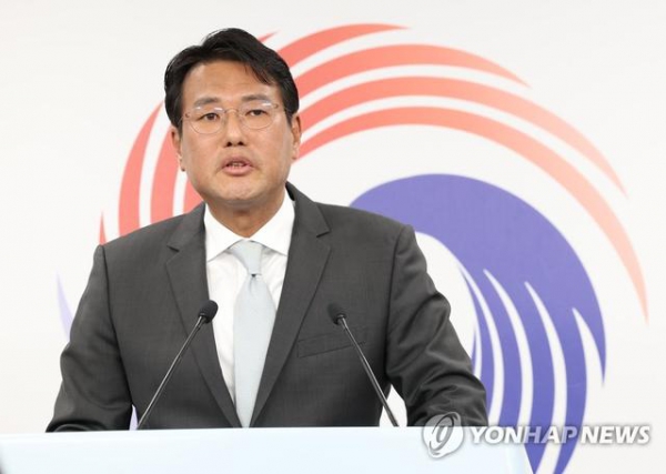 5月18日,在位于首尔市龙山区的总统府,韩国国家安全室第一次长金泰孝举行记者会。 图自韩联社