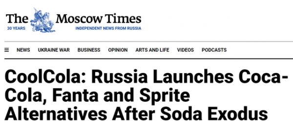 今年3月初,可口可乐公司宣布暂停在俄业务,三大知名的碳酸饮料无法在俄罗斯市面上找到。据《莫斯科时报》报道,虽然人们仍然可以在商店中找到一些可口可乐公司的产品,但自3月以来,它们的价格飙升了约200%。