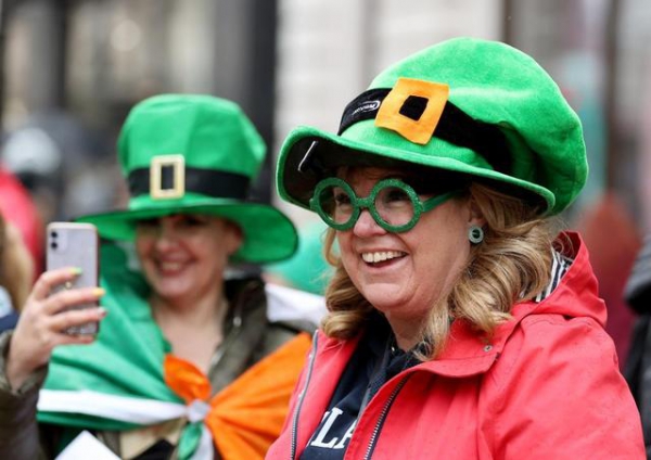 3月13日,人们在英国伦敦观看圣帕特里克节游行。新华社记者李颖摄