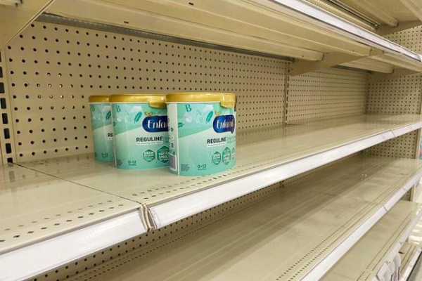 近期,全美各地出现婴儿配方奶粉短缺问题。美国许多母亲表示,她们给孩子喂奶时都控量,并四处寻找更多的配方奶粉。有些家长驱车数小时,结果只能找到更多空货架。