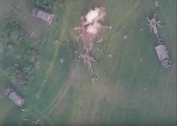 乌军M777榴弹炮被炸毁的视频截屏