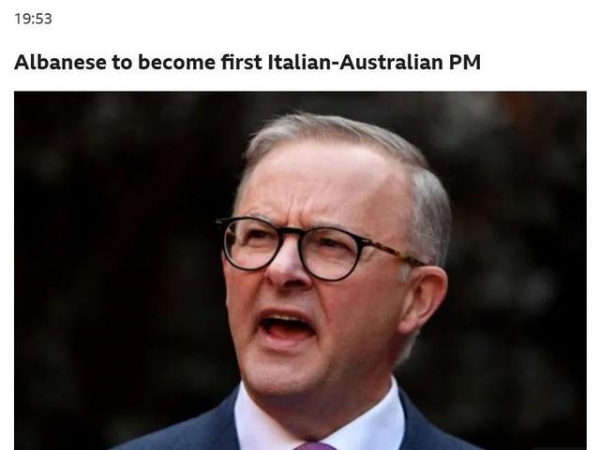 BBC报道称,工党将组建澳大利亚新政府,工党领袖阿尔巴尼斯将成为澳首位意大利裔的总理。报道称,随着阿尔巴尼斯当选,工党总部响起“阿尔巴尼斯”和“工党”的欢呼声,在执政联盟之一的自由党内部,则对此反应平静。