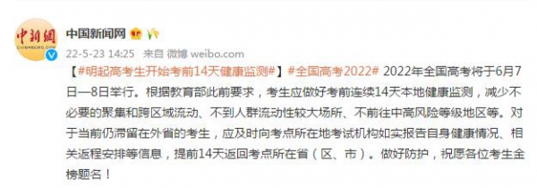 原标题:明起高考生开始考前14天健康监测