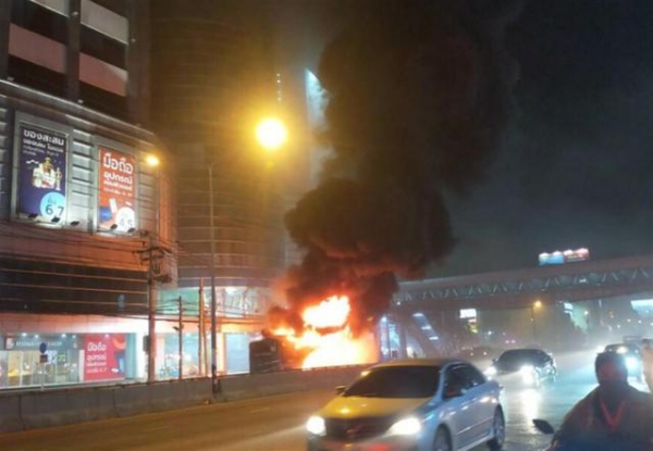 被烧的公交车,图片来源Thai PBS