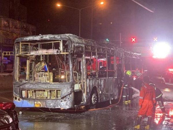 据泰国公共广播服务公司(Thai PBS)报道,5月23日晚,泰国暖武里府一辆公交车突然起火,车上20余名乘客安全逃生,一名女子脸部和手臂被烧伤。