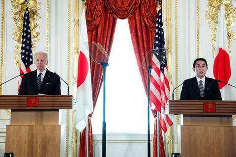 5月23日,日本首相岸田文雄与美国总统拜登举行联合记者会。(图/产经新闻)
