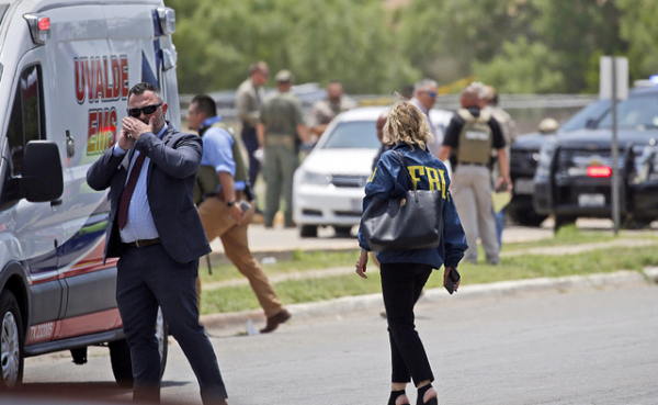 美国得克萨斯州一所小学发生的枪击事件已造成15人死亡。(现场图)