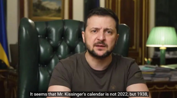 对于基辛格的这一表态,泽连斯基发表视频讲话作出回应。美国《国会山报》用“抨击”形容了他的态度。报道称,当地时间25日,泽连斯基在视频讲话中批评基辛格“从遥远的过去中冒出来,说应把一块乌克兰(领土)给俄罗斯”,并讽刺他的“日历不是2022年,而是1938年”。对此,《国会山报》解释称,这指的是1938年签订的《慕尼黑协定》,该协定中将捷克斯洛伐克的苏台德区割让给纳粹德国。