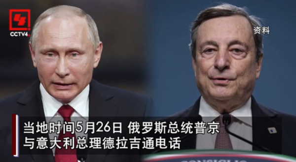 当地时间5月26日,俄罗斯总统普京与意大利总理德拉吉通电话。两国领导人就乌克兰局势交换了意见。