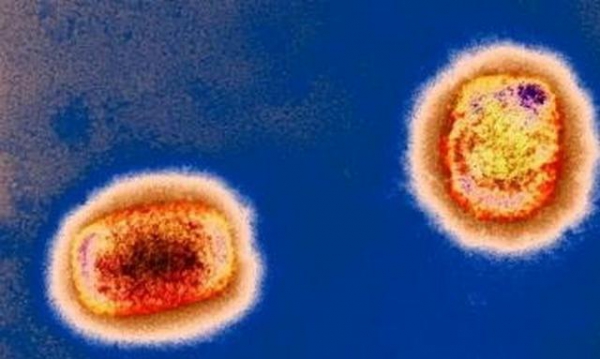 彩色透射电子显微捕获的猴痘病毒颗粒,源自英国《新科学家》。