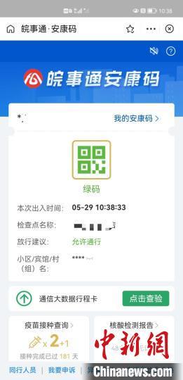 原标题:安徽健康码“四码合一”同屏展示 提升“通关”效率