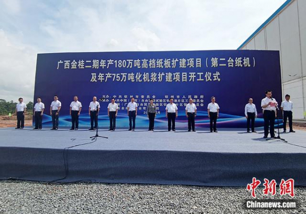 中新社钦州5月30日电 (翟李强 黄海志)由印尼金光集团APP部署在中国(广西)自由贸易试验区钦州港片区,年产180万吨高档纸板扩建项目(第二台纸机)及年产75万吨化机浆扩建项目5月30日宣布开工。