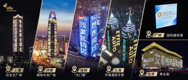 自3月22日起,大中华区艾菲陆续在北京、上海、广州、深圳、济南等核心城市地标楼宇,开启新一轮品牌广告投放,内容覆盖艾菲奖、艾菲全球化营销奖、艾菲效果营销奖、艾菲汽车奖四大IP,刷圈多个城市网红夜幕场景,向行业宣告新赛季强势起航。