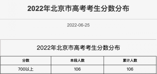 同时,北京教育考试院公布了2022年北京市高考考生分数分布表。
