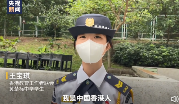 “我一出生就是中国人,我是中国香港人!”2005年出生的王宝琪,是香港教育工作者联会黄楚标中学升旗队的成员。王宝琪最渴望的就是能在七一当天做升旗手。她说,国旗代表国家,通过担任旗手,“对国家更有归属感,更了解自己的国家”。