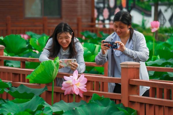 原标题:惊喜“莲莲” 如皋平园池千亩荷塘开出并蒂莲