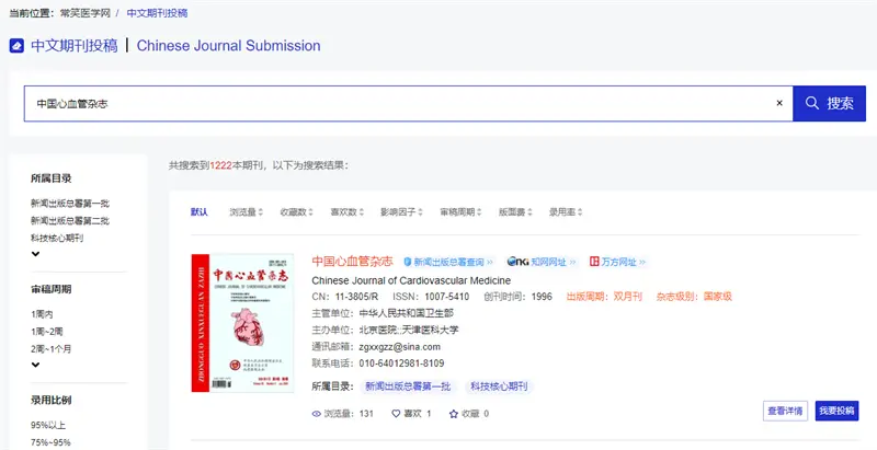 频繁出现退修、退稿问题,我们首先要考虑论文的内容方向、题材、格式或者重复率是否出现了问题;其次还要考虑,是否选择了与自身水平不符的期刊。通过常笑医学网的筛选功能,我们可以根据所属目录、审稿周期、录用比例、出版周期、杂志级别、影响因子等多种条件进行筛选,确保写作水平符合期刊要求、内容方向与期刊相匹配、审核周期赶得上发表时间。