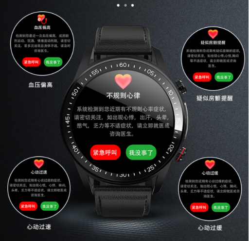 康菲特智能健康手表透过内置多种不同功能的传感器,精准采集各项健康数据,并上传至后台服务器分析,当监测到:心动过速,心动过缓,体温异常,血压偏高等异常时,及时通过语音,文字,振动,APP弹窗等多途径提醒并通知亲友或管理员。连接或关联康菲特APP,可实现同步了解各项指标及状态,如体温、血压、睡眠、运动等,并同步生成报告。