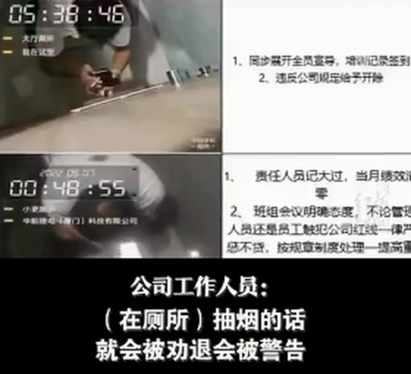 原标题:网传一公司厕所隔间装监控,引热议!工作人员称为监控员工吸烟