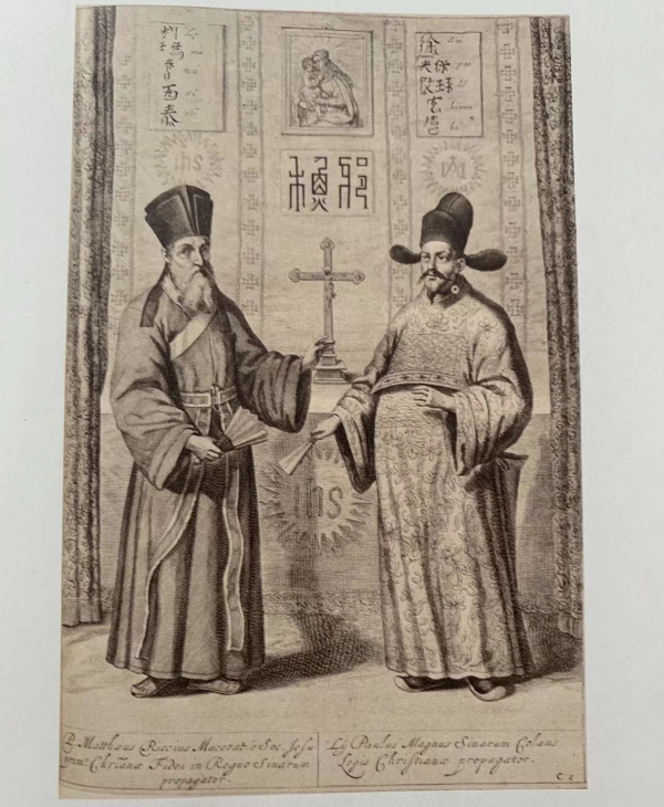 利玛窦、徐光启像铜版画,1667年,上海图书馆藏。 本文作者提供