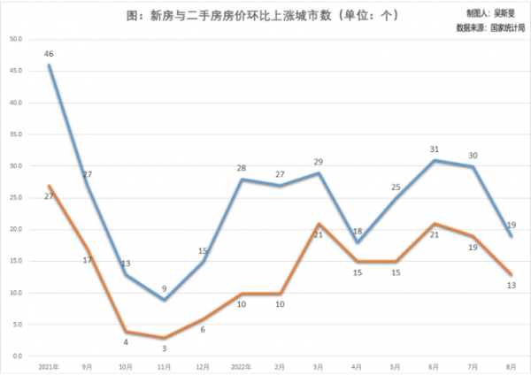 非热点城市价格下跌压力更大。根据中国房地产指数系统百城价格指数,8月,百城中新房价格环比下跌的城市数量增加至69个,为近两年的最高水平。