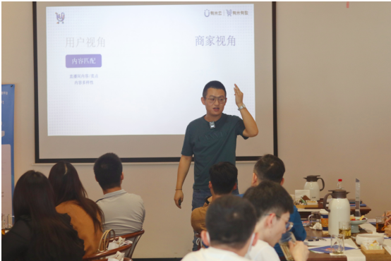 作为第一位分享嘉宾,张振围绕抖音流量逻辑方面进行拆解,指出GMV=流量*转化*客单,紧接着分别从用户和商家两个视角来讲述:用户的兴趣、购买习惯、社交和协同都可能大不相同,因此新电商商家需要在直播间提供多样的内容/买点来满足用户。
