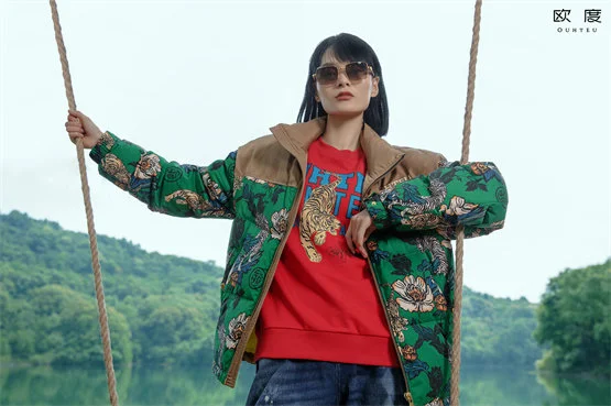 欧度本季联名款系列推出“无性别穿搭”,意在传达超越性别的穿衣自由理念,男士可以展现优雅柔情一面,女士也可以穿得很酷。这件虎嗅蔷薇国潮艺术印花拼接羽绒服,不仅配色男女都适用,微廓宽松版型还不挑身材,包裹性强,混搭打造轻松穿搭体验。
