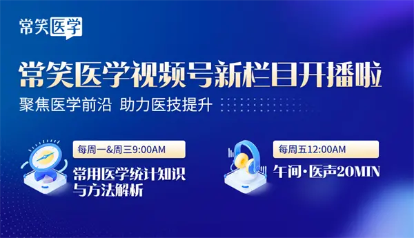 为了持续给广大医务工作者提供优质学习资源,常笑医学视频号上线了《常用医学统计知识与方法解析》、《午间·医声20MIN》两个新栏目。