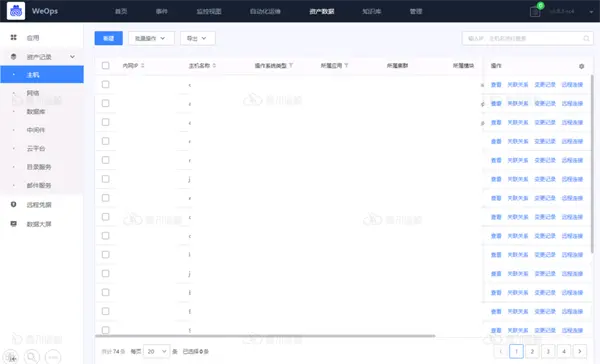 高效管理IT资产:WeOps自动生成发现采集和架构拓扑,覆盖了坚美铝业主机、基础软件等各个运维层面数十种IT对象,数百个IT资源;同时具有良好的扩展性,支持了第三方数据源的集成对接。