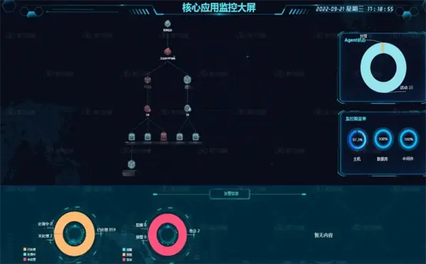 构建可视化运维管理体系,随时掌握核心业务及应用运行状态:通过平台可实现资源状态大屏、应用墙、核心应用大屏等可视化大屏,可以实现公司整体资源运行健康状态、应用运行健康状态,实现运维的可视化。