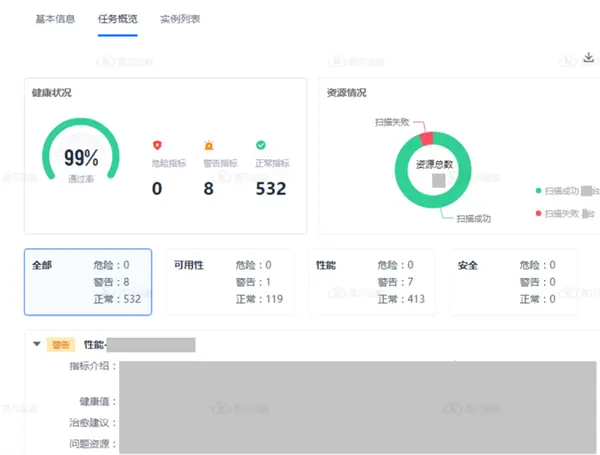构建主动服务能力,降低故障发生,提高系统稳定性:利用平台的健康扫描能力,可以定时自动对公司业务应用及IT资源进行健康扫描,提前发现系统性能故障及安全隐患,避免故障发生,提升业务应用运行的稳定性。