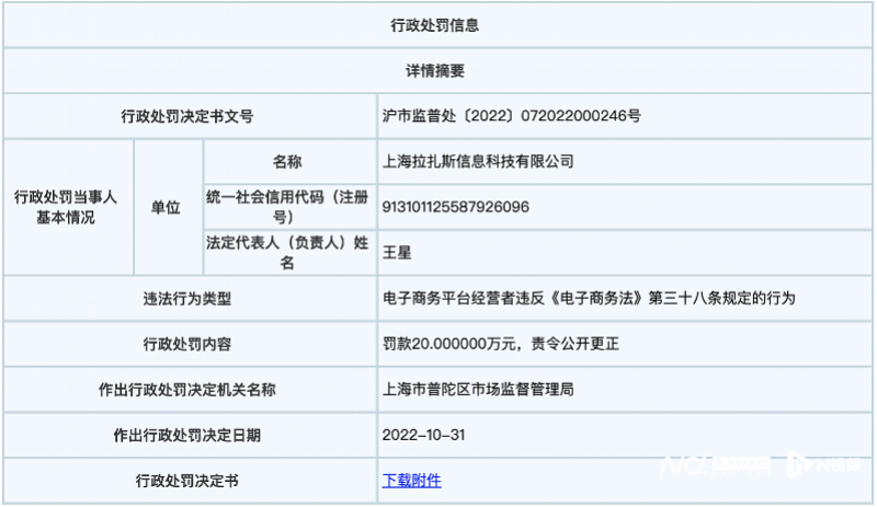 依据《电子商务法》第38条第2款和第83条规定,10月31日,上海市普陀区市场监督管理局责令饿了么公开更正,并处罚款20万元。