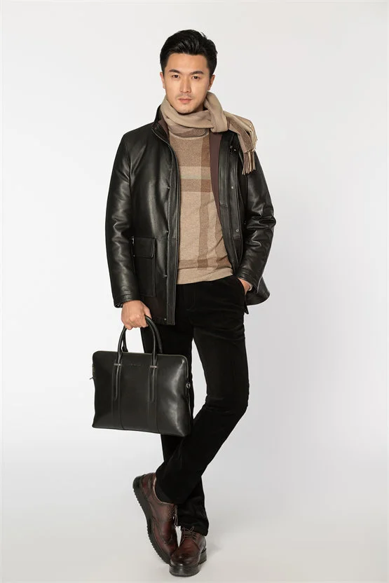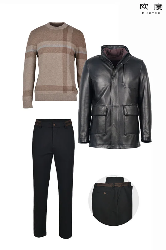 到了仲冬时节,人们都希望尽量避免层叠很多厚重的衣物,最好一两件就能搞定风度与温度,商务男士一定要尝试抗风御寒的皮衣穿搭。欧度澳新羊皮外套,通体黑色稳重大气,款式设计也相对简洁,内里羽绒内胆保暖效果加倍,还可以一衣多穿轻松驾驭各种场合。杏色和燕麦色格纹提花羊绒针织,自带肌理感,彰显尊贵身份,室内单穿也很时髦。