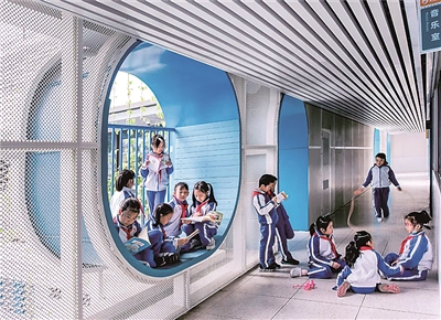 深圳市福田区福强小学学生在设计感十足的校园里活动。学校供图