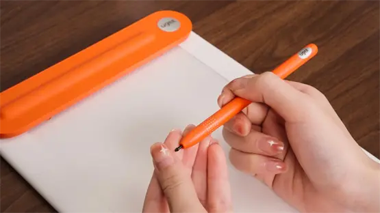 在小橘板的手写笔里也大有文章。此次新发布的PH8无源压感笔采用全新压感传导精密技术,笔尖与孔径之间的间隙小于 1mm,不回弹不晃动,手感如传统铅笔般稳定丝滑。笔身结构则是参考传统2B铅笔等常规出水笔的尺寸进行设计,9mm直径细笔令画笔尺寸接近传统手写笔,握感更舒适,即便是初学者也能迅速找到绘画手感。